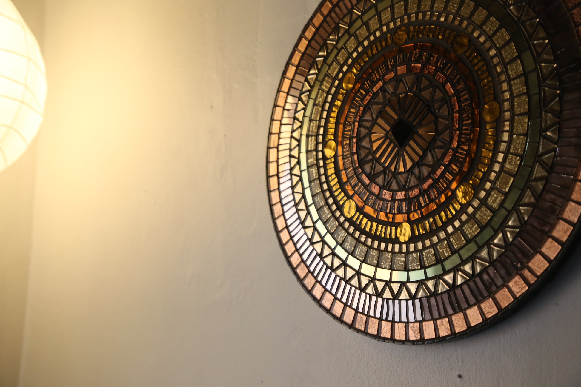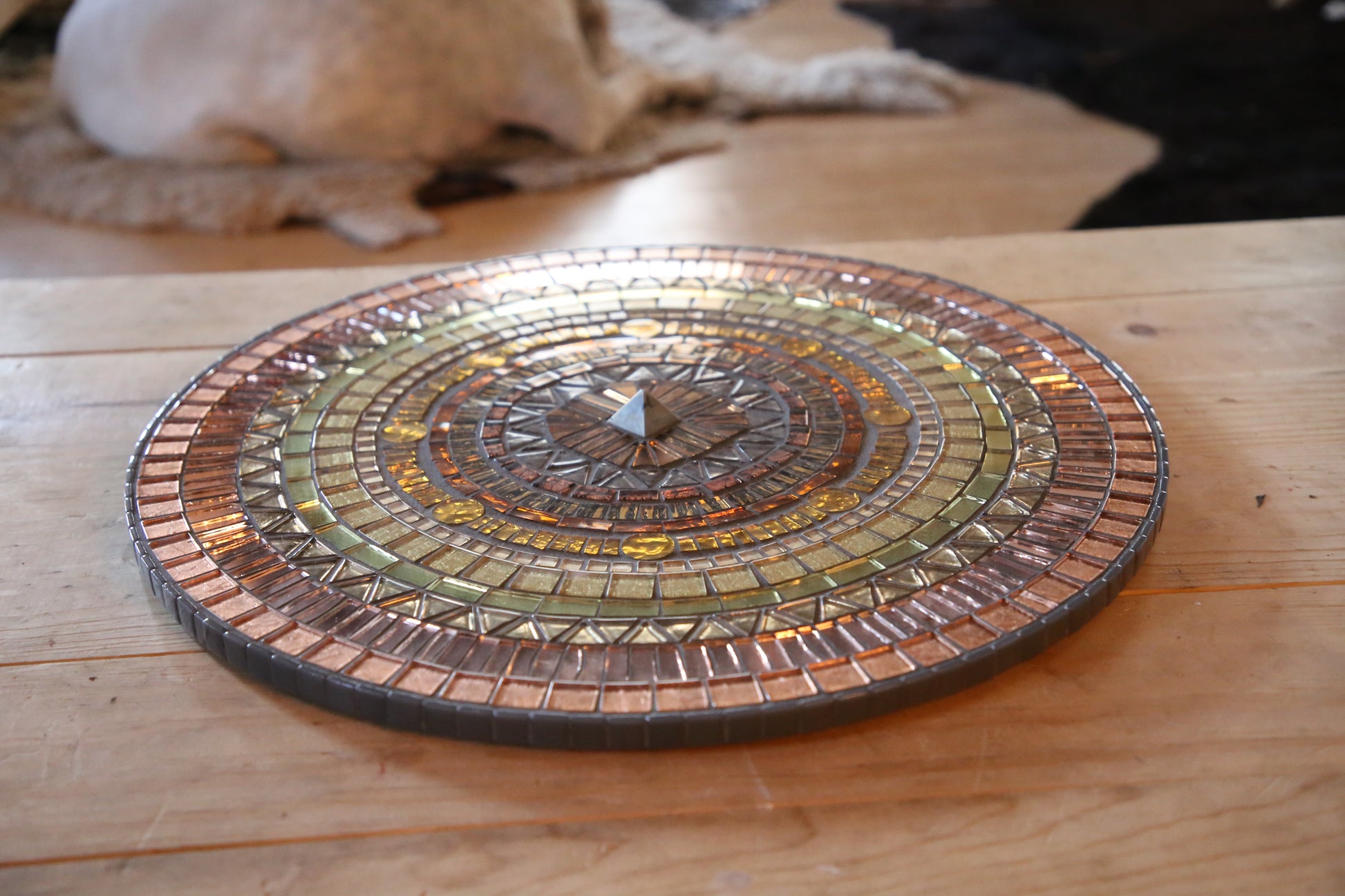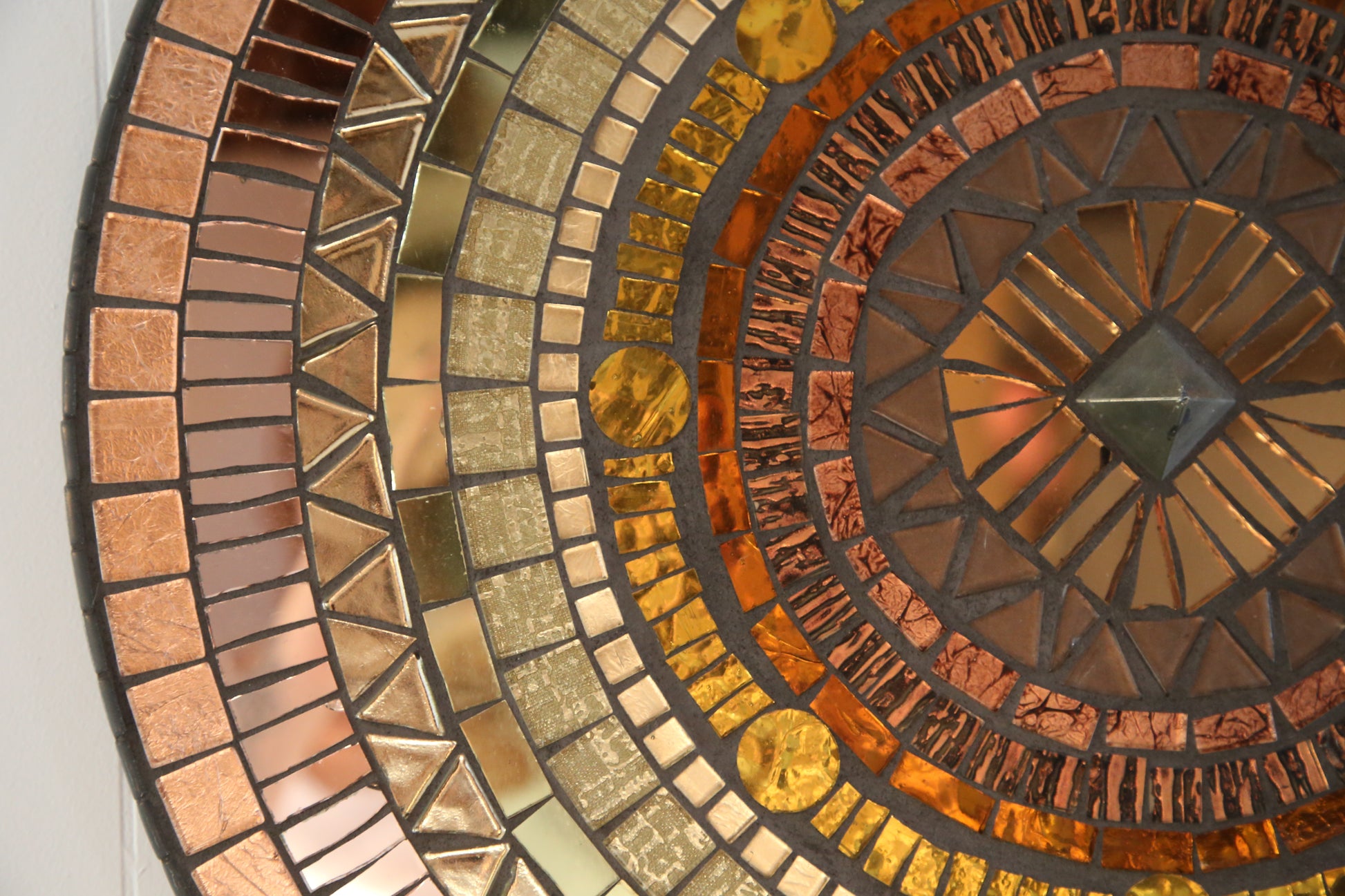 materials: pyrite center, glass tile, mdf substrate, grout.