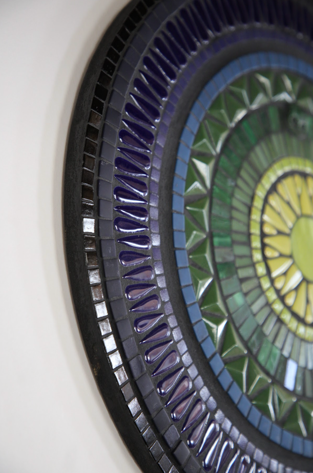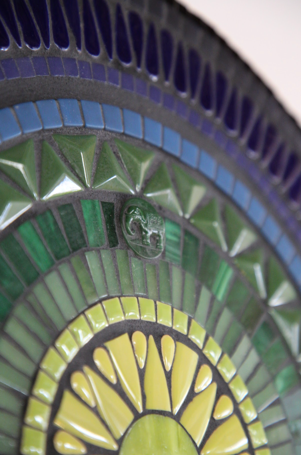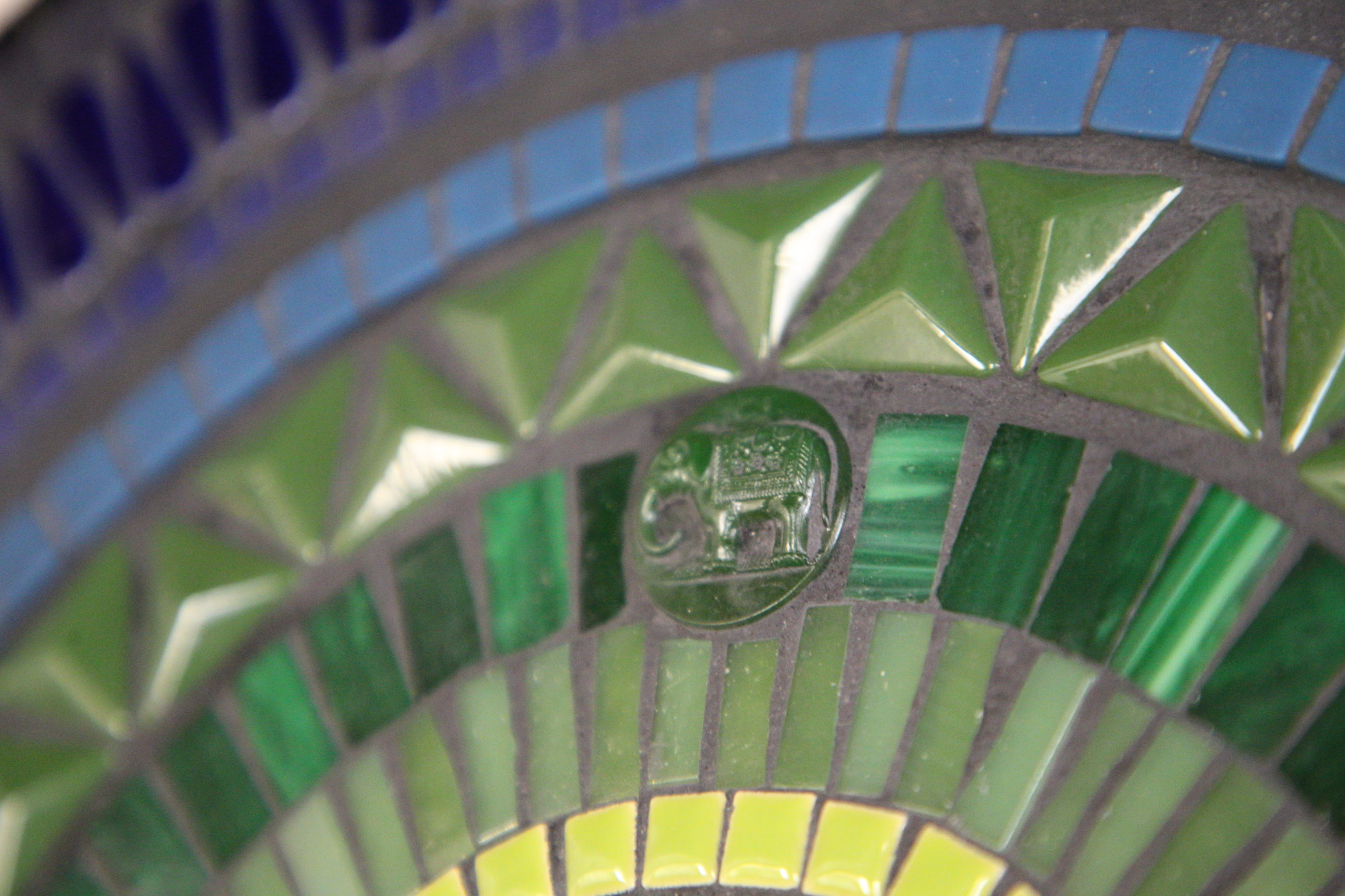 glass & ceramic tile, vintage Czech glass elephant, mdf substrate, grout