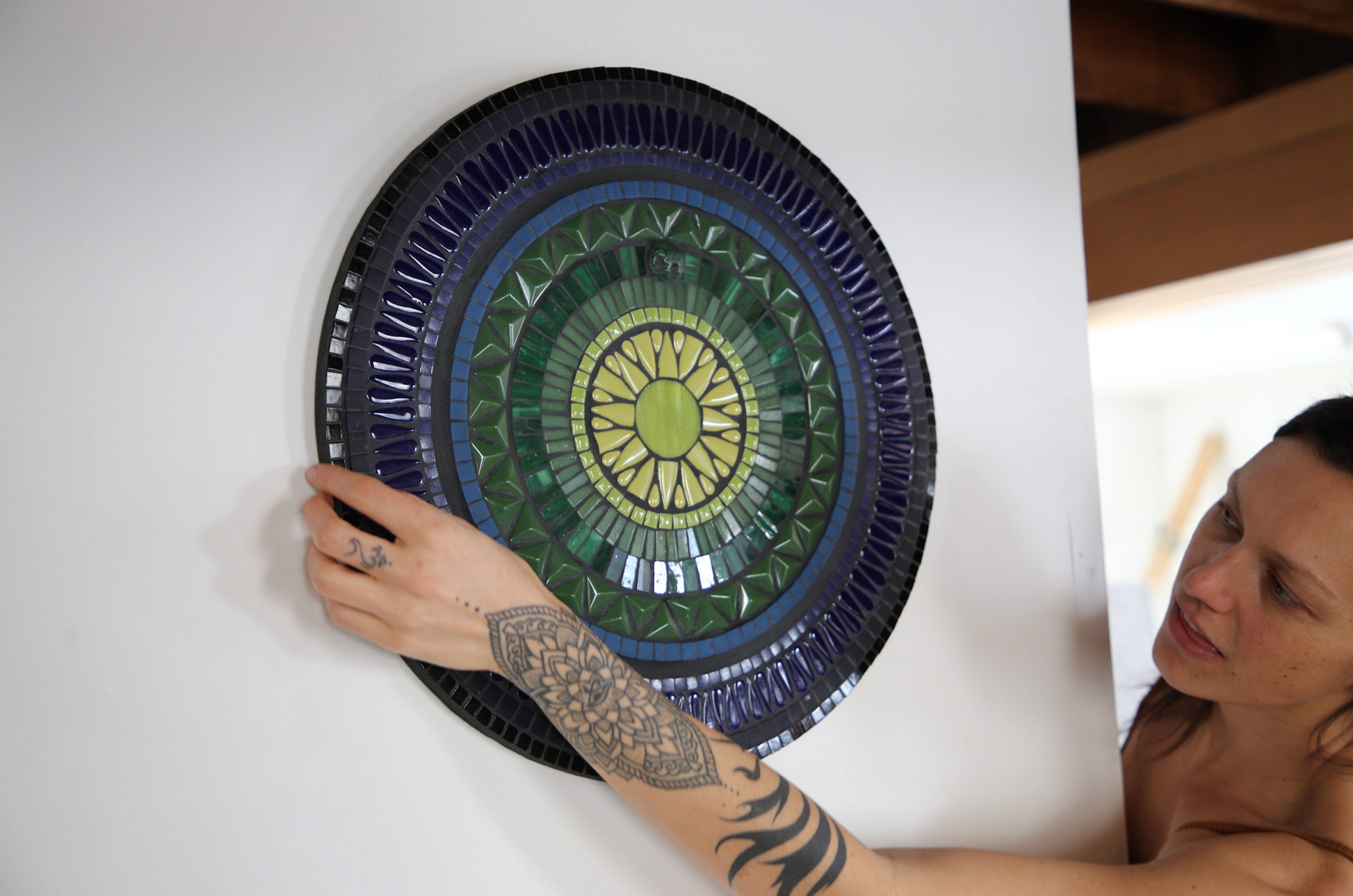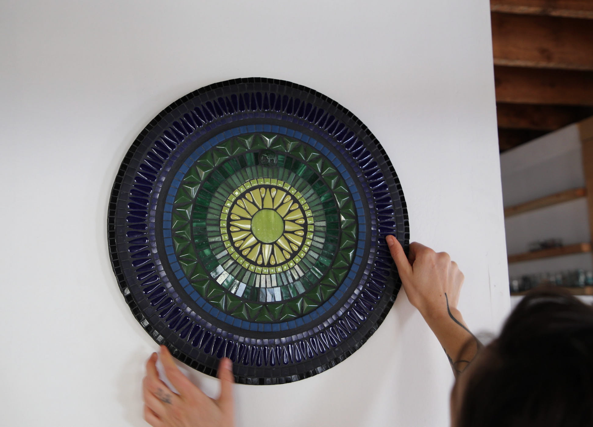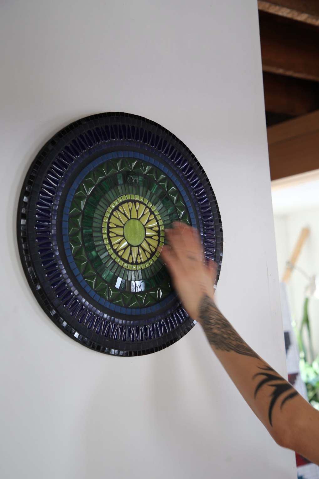 glass & ceramic tile, vintage Czech glass elephant, mdf substrate, grout
