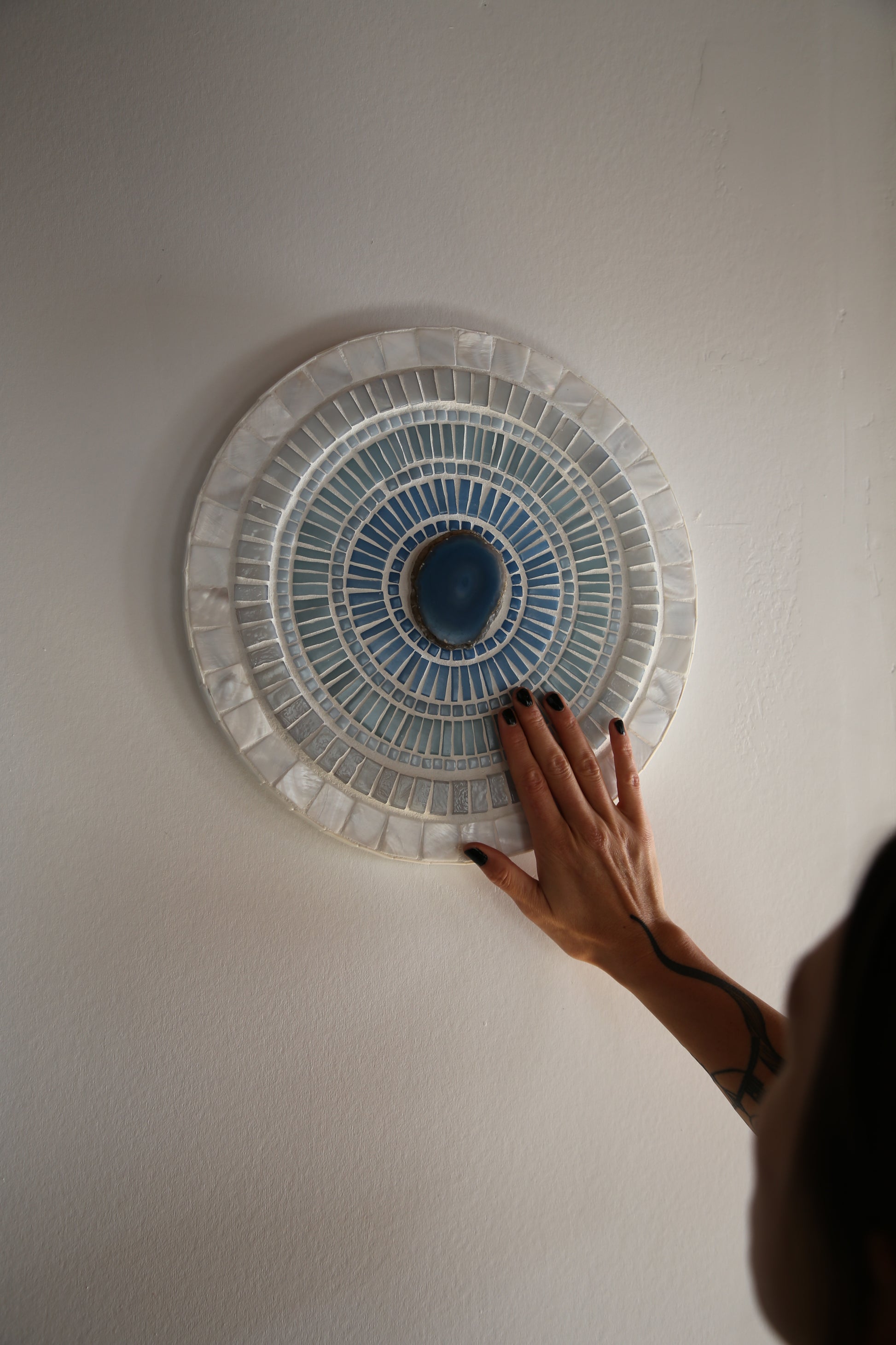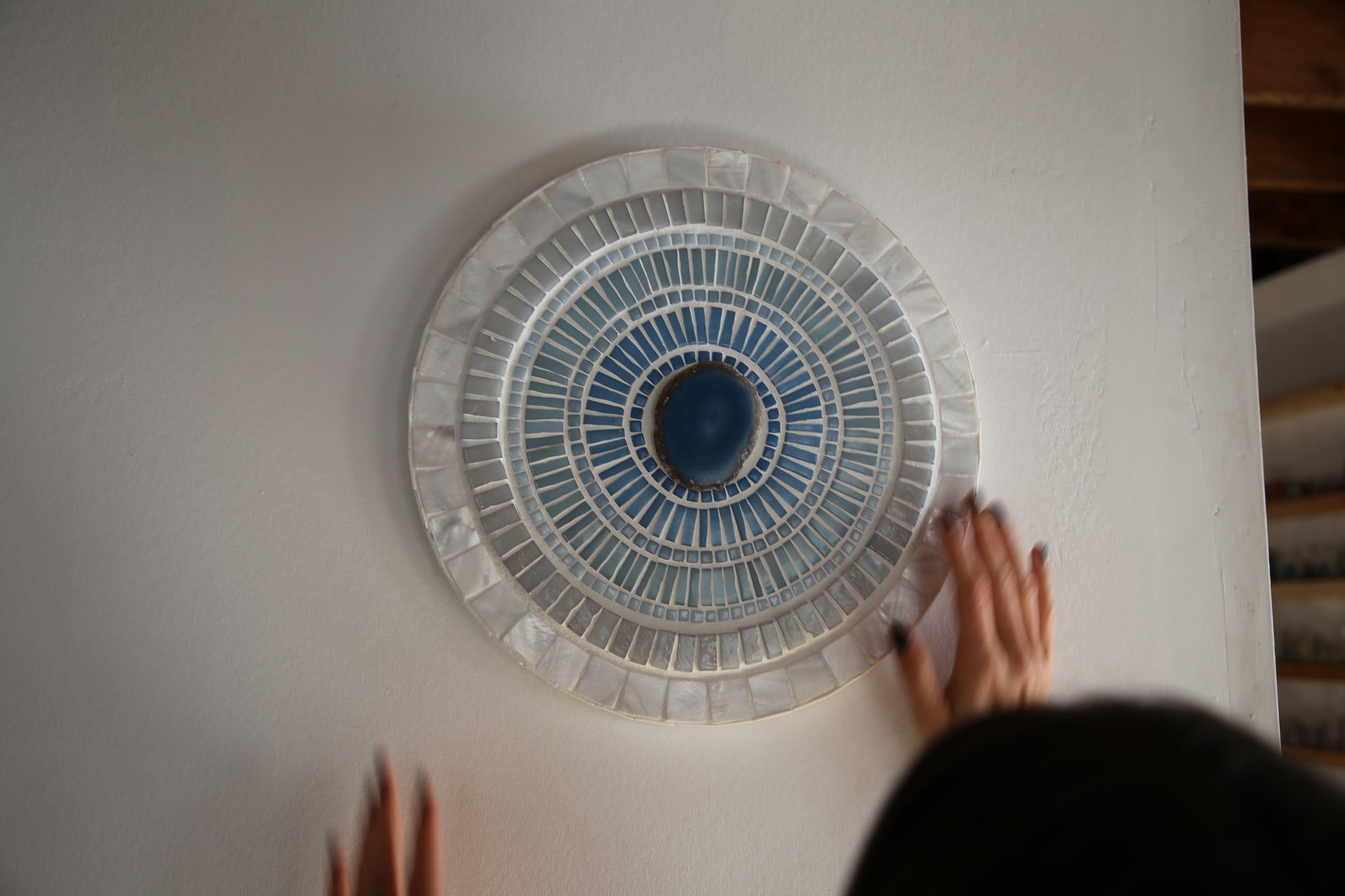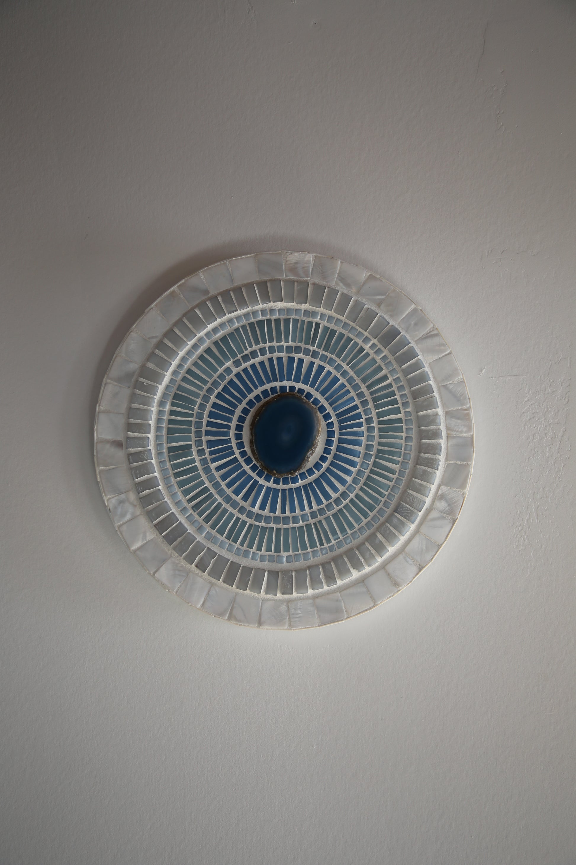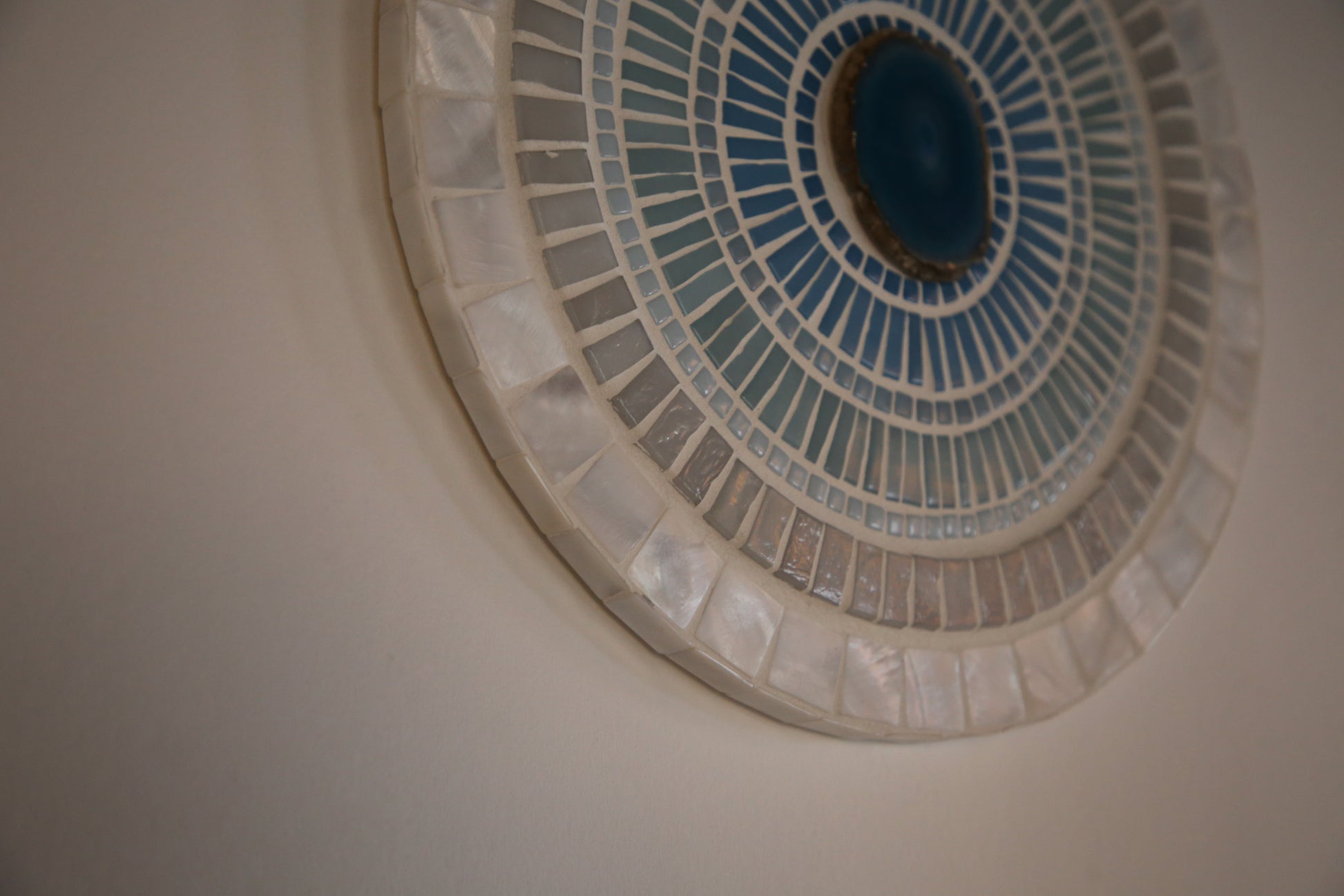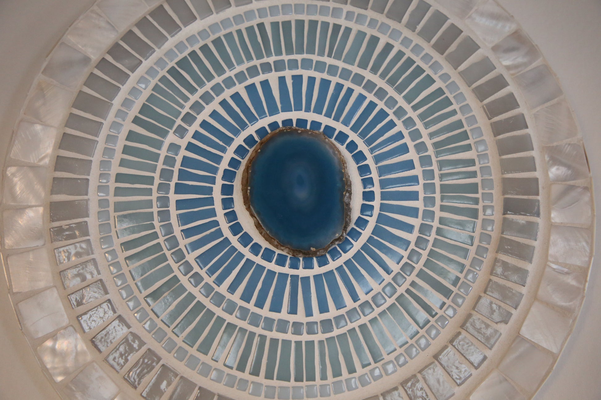 glass tile, mother of pear, agate center, mdf substrate, grout